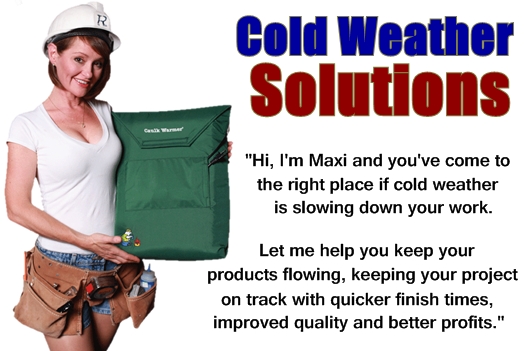 So they have these bags that look like the size of the bring-your-own grocery bags that the environmentally conscious among us take to the store, but with a flap on the top that folds over. You plug it in, set the thermostat, and it keeps everything ready for good product flow and improved quality. There are other bag sizes as well that will keep your five gallon bucket of joint compound or paint ready to go, or two gallon or one gallon or 20# cylinder warmers. It looks as though they have all the bases covered.